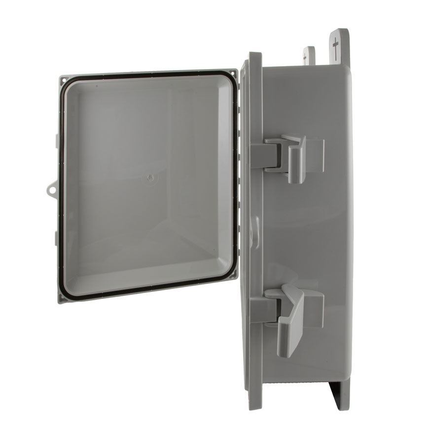 The lid features a non-metallic hinge system that allows for quick removal & can be reattached just as quickly without the need for any tools. The Lid also comes with a non-metallic locking hasp to secure the enclosure from tampering.