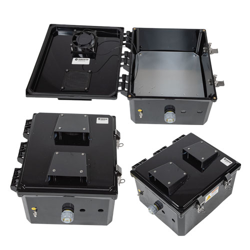 Industrial outdoor NEMA IP24 enclosure TEBPC121006-1HF is built with 120V AC mounting plate powered. Our polycarbonate cabinet enclosure for outdoor use incorporates built-in fan cooled system. Transtector NEMA enclosure box with fan cooling is controlled by a mechanical thermostat circuit. TEBPC121006-1HF outdoor IP24 NEMA 3R enclosure cabinet datasheet with details of specifications and CAD drawing with dimensions can be found in the PDF above.