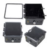 Our national electrical manufactures association NEMA box has the outer dimensions of 12x10x6. The 12x10x6 NEMA enclosure box inner dimensions are 11.01x9.01x5.5. Transtector 4X rating NEMA IP66 enclosure panel part number TEBWPC121006-02 is constructed of polycarbonate. Our NEMA 4X rating polycarbonate enclosure cabinet is black in color. This black polycarbonate enclosure box is designed to adhere to the national electrical manufacturers association NEMA ratings.