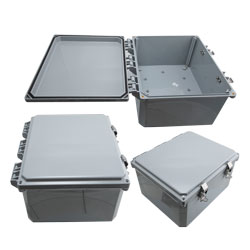 Our outdoor NEMA 4X rating enclosure is designed to be weatherproof for added protection of its important electronic and electrical components. The weatherproof NEMA box from Transtector provides watertight protection from the outdoors. This NEMA waterproof cabinet enclosure has an IP66 rating.