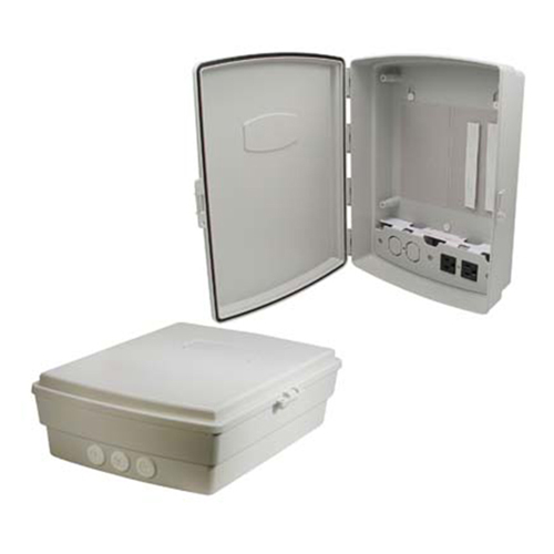 Transtector 3 rating NEMA IP55 enclosure panel part number TEP141004-100 is constructed of ABS plastic. Our NEMA 3 rating enclosure cabinet is gray in color. This gray ABS plastic enclosure box is designed to adhere to the national electrical manufacturers association NEMA ratings.