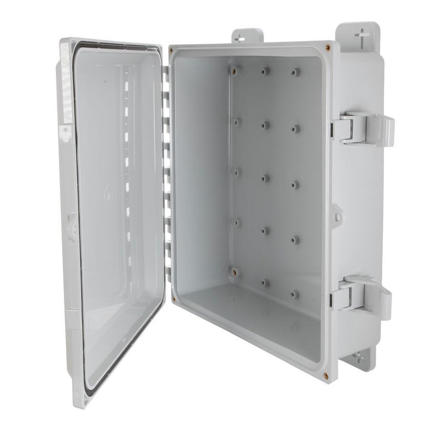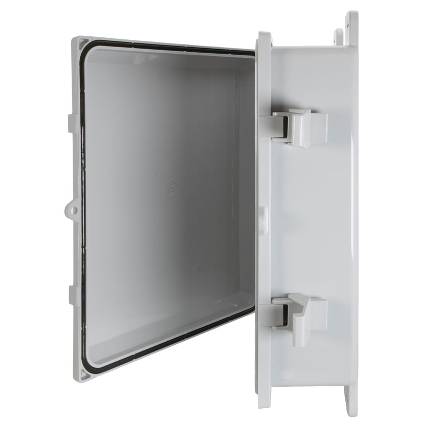 The lid features a non-metallic hinge system that allows for quick removal & can be reattached just as quickly without the need for any tools. The Lid also comes with a non-metallic locking hasp to secure the enclosure from tampering.