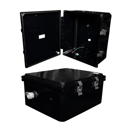 Our outdoor NEMA 4X rating enclosure is designed to be weatherproof for added protection of its important electronic and electrical components. The weatherproof NEMA box from Transtector provides watertight protection from the outdoors. This NEMA waterproof cabinet enclosure has an IP66 rating.