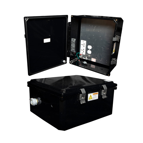 Industrial outdoor NEMA IP66 enclosure TEBPC141206-E00 is built with 120-240V AC universal outlet mounting plate powered. TEBPC141206-E00 outdoor IP66 NEMA 4X enclosure cabinet datasheet with details of specifications and CAD drawing with dimensions can be found in the PDF above. Transtector NEMA 4X rating enclosure cabinets are stocked on a continual basis. Not only are our 4X rating NEMA enclosures in-stock, but like our other products, these outdoor IP66 cabinets also will ship the same business day as purchased. Custom configured NEMA enclosure cabinets may be available from Transtector in some models and sizes, please contact us for additional information.