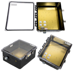 Our outdoor NEMA 4X rating enclosure is designed to be weatherproof for added protection of its important electronic and electrical components. The weatherproof NEMA box from Transtector provides watertight protection from the outdoors. This NEMA waterproof cabinet enclosure has an IP66 rating.