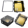 Our national electrical manufactures association NEMA box has the outer dimensions of 14x12x6. The 14x12x6 NEMA enclosure box inner dimensions are 13.7x11.7x5.9. Transtector 4X rating NEMA IP66 enclosure panel part number TEBWPC141206-100 is constructed of polycarbonate. Our NEMA 4X rating polycarbonate enclosure cabinet is black in color. This black polycarbonate enclosure box is designed to adhere to the national electrical manufacturers association NEMA ratings.