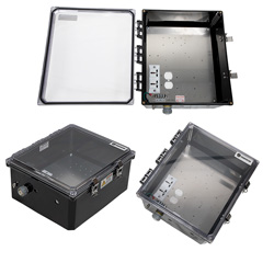 Our outdoor NEMA 4X rating enclosure is designed to be weatherproof for added protection of its important electronic and electrical components. The weatherproof NEMA box from Transtector provides watertight protection from the outdoors. This NEMA waterproof cabinet enclosure has an IP66 rating.