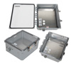 Our national electrical manufactures association NEMA box has the outer dimensions of 14x12x6. The 14x12x6 NEMA enclosure box inner dimensions are 13.7x11.7x5.9. Transtector 4X rating NEMA IP66 enclosure panel part number TEWPC141206-EH0 is constructed of polycarbonate. Our NEMA 4X rating polycarbonate enclosure cabinet is clear in color. This clear polycarbonate enclosure box is designed to adhere to the national electrical manufacturers association NEMA ratings.