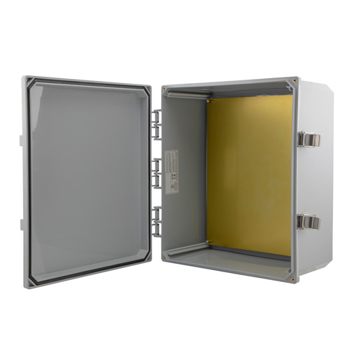 Transtector 4X rating NEMA IP66 enclosure panel part number TEPC141206-KIT is constructed of polycarbonate. Our NEMA 4X rating polycarbonate enclosure cabinet is dark gray in color. This dark gray polycarbonate enclosure box is designed to adhere to the national electrical manufacturers association NEMA ratings.