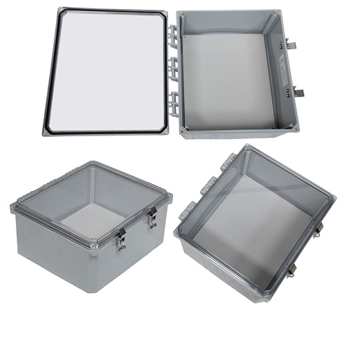 Transtector 4X rating NEMA IP66 enclosure panel part number TEWPC141206-KIT01 is constructed of polycarbonate. Our NEMA 4X rating polycarbonate enclosure cabinet is clear in color. This clear polycarbonate enclosure box is designed to adhere to the national electrical manufacturers association NEMA ratings.
