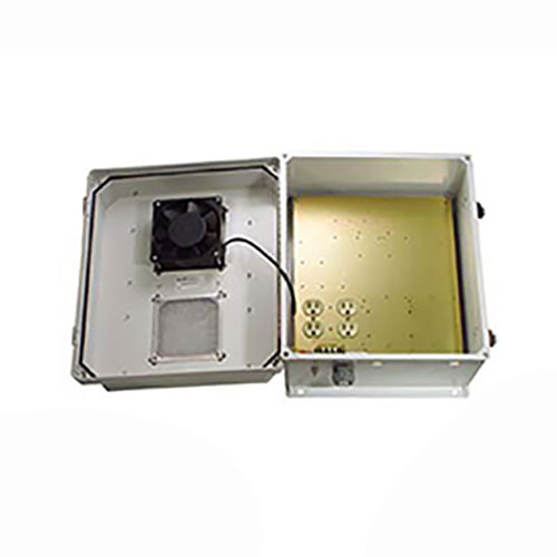 - Features aluminum mounting plate with surge protected duplex 120 VAC outlets & solid state controlled cooling system