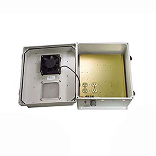 - Features aluminum mounting plate with surge protected duplex 120 VAC outlets & solid state thermostat controlled heating & cooling system
