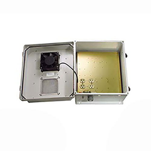 - Features aluminum mounting plate with surge protected duplex 120 VAC outlets & solid state thermostat controlled heating & cooling system