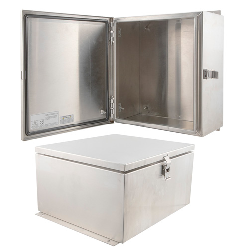 Transtector 4X rating NEMA IP66 enclosure panel part number TESS141207 is constructed of 304 stainless steel. This 304 stainless steel enclosure box is designed to adhere to the national electrical manufacturers association NEMA ratings.Our outdoor NEMA 4X rating enclosure is designed to be weatherproof for added protection of its important electronic and electrical components. The weatherproof NEMA box from Transtector provides watertight protection from the outdoors. This NEMA waterproof cabinet enclosure has an IP66 rating.