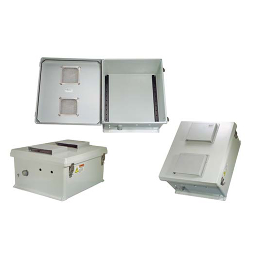 The box is a rugged weatherproof enclosure that is ideal for both indoor and outdoor applications. Constructed from molded fiberglass reinforced polyester, it is well suited for high temperature or corrosive environments. The integrated mounting flange allows it to be mounted directly to any flat wall surface provided proper screws are used into secure studs. The enclosure can also be mounted to a wide diameter range of poles with one of our optional pole mounting hardware kits. The lid features a stainless steel continuous hinge and stainless steel quick release latches with padlock hasps. Includes fully gasketed vented lid with filters & integral mounting flange. The enclosure material is UV stabilized and comes in machine tool gray.