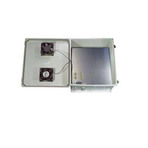Industrial outdoor NEMA IP24 enclosure TEF181608-10FS is built with 120V AC mounting plate. Our fiberglass reinforced polyester (FRP) cabinet enclosure for outdoor use incorporates built-in fan cooled system. Transtector NEMA enclosure box with fan cooling is controlled by a solid state thermostat circuit. TEF181608-10FS outdoor IP24 NEMA 3R enclosure cabinet datasheet with details of specifications and CAD drawing with dimensions can be found in the PDF above.