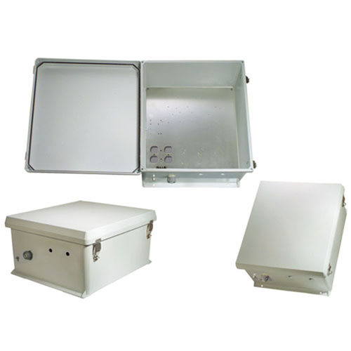 Transtector 4 rating NEMA IP66 enclosure panel part number TEF181608-500 is constructed of fiberglass reinforced polyester (FRP). Our NEMA 4 rating fiberglass reinforced polyester enclosure cabinet is gray in color. This gray fiberglass reinforced polyester (FRP) plastic enclosure box is designed to adhere to the national electrical manufacturers association NEMA ratings.