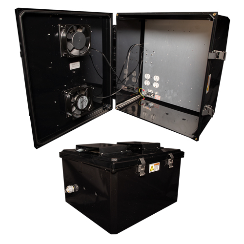 Industrial outdoor NEMA IP24 enclosure TEBPC181610-10FS is built with 120V AC mounting plate powered. Our polycarbonate cabinet enclosure for outdoor use incorporates built-in fan cooled system. Transtector NEMA enclosure box with fan cooling is controlled by a solid state thermostat circuit. TEBPC181610-10FS outdoor IP24 NEMA 3R enclosure cabinet datasheet with details of specifications and CAD drawing with dimensions can be found in the PDF above.