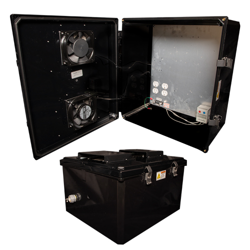 Industrial outdoor NEMA IP24 enclosure TEBPC181610-1HFA2 is built with 120V AC mounting plate powered. Our polycarbonate cabinet enclosure for outdoor use incorporates built-in fan cooled system. Transtector NEMA enclosure box with fan cooling is controlled by a user adjustable thermostat circuit. TEBPC181610-1HFA2 outdoor IP24 NEMA 3R enclosure cabinet datasheet with details of specifications and CAD drawing with dimensions can be found in the PDF above.
