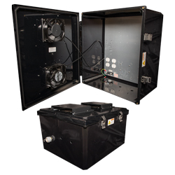 Industrial outdoor NEMA IP24 enclosure TEBPC181610-1HFS is built with 120V AC mounting plate powered. Our polycarbonate cabinet enclosure for outdoor use incorporates built-in fan cooled system. Transtector NEMA enclosure box with fan cooling is controlled by a solid state thermostat circuit. TEBPC181610-1HFS outdoor IP24 NEMA 3R enclosure cabinet datasheet with details of specifications and CAD drawing with dimensions can be found in the PDF above.