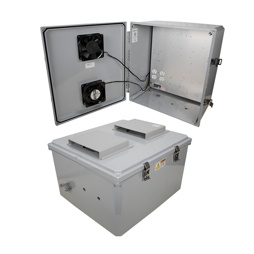 Industrial outdoor NEMA IP24 enclosure TEPC181610-10F is built with 120V AC mounting plate. Our polycarbonate cabinet enclosure for outdoor use incorporates built-in fan cooled system. Transtector NEMA enclosure box with fan cooling is controlled by a mechanical thermostat circuit. TEPC181610-10F outdoor IP24 NEMA 3R enclosure cabinet datasheet with details of specifications and CAD drawing with dimensions can be found in the PDF above.