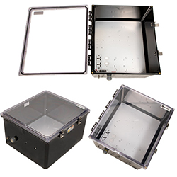 Our outdoor NEMA 4X rating enclosure is designed to be weatherproof for added protection of its important electronic and electrical components. The weatherproof NEMA box from Transtector provides watertight protection from the outdoors. This NEMA waterproof cabinet enclosure has an IP66 rating.