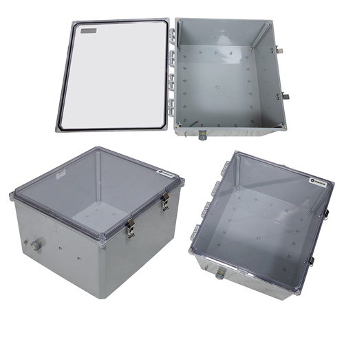 Our national electrical manufactures association NEMA box has the outer dimensions of 18x16x10. The 18x16x10 NEMA enclosure box inner dimensions are 18.2x16.2x9.7. Transtector 4X rating NEMA IP66 enclosure panel part number TEWPC181610-02 is constructed of polycarbonate. Our NEMA 4X rating polycarbonate enclosure cabinet is clear in color. This clear polycarbonate enclosure box is designed to adhere to the national electrical manufacturers association NEMA ratings.