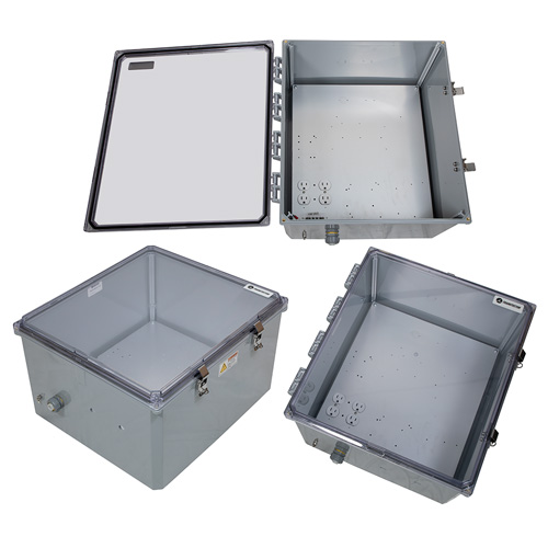 Our outdoor NEMA 4X rating enclosure is designed to be weatherproof for added protection of its important electronic and electrical components. The weatherproof NEMA box from Transtector provides watertight protection from the outdoors. This NEMA waterproof cabinet enclosure has an IP66 rating.