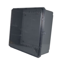 Transtector 6P rating NEMA IP68 enclosure panel part number TEWPC242410 is constructed of polycarbonate. Our NEMA 6P rating polycarbonate enclosure cabinet is dark gray in color. This dark gray polycarbonate enclosure box is designed to adhere to the national electrical manufacturers association NEMA ratings.