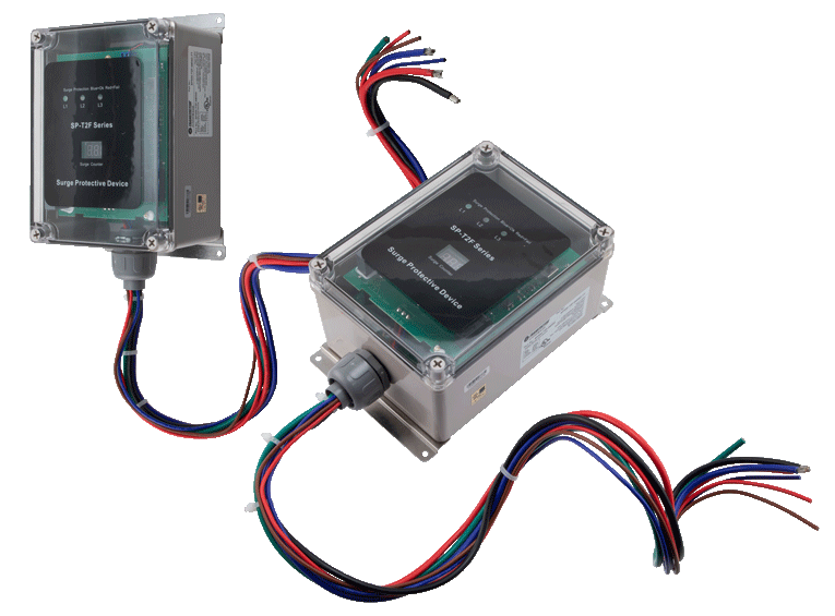 The new AC panel surge protectors are rugged enough for outdoor use. They are housed in watertight, corrosion-proof NEMA 4X enclosures that mount to a wall. Their operating temperature range is -40 degrees to +167 degrees Fahrenheit.