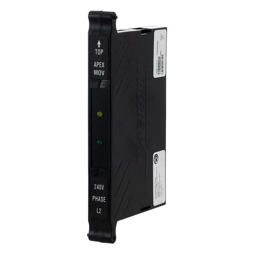 Industrial electrical surge protection module is part of the Transtector APEX series. 1000-717-2 TVSS AC surge protector is for 240 Vac applications. The 240V AC TVSS is a surge protector. Our 240V SPD is just one of many alternating current protection devices that ship same-day from Transtector.