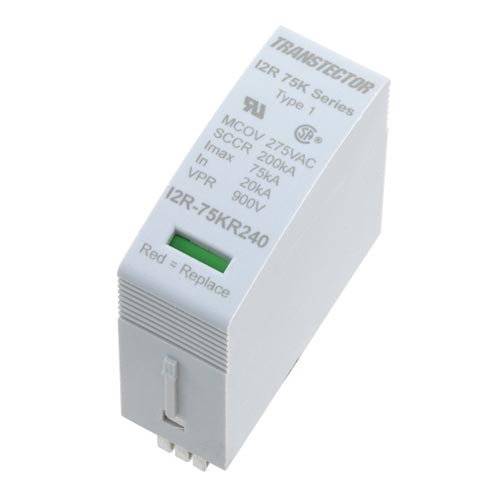 Industrial electrical surge protection module is part of the Transtector I2R-75K series. I2R-75KR240 TVSS AC surge protector is for 240 Vac applications. The 240V AC TVSS is a surge protector. Our 240V SPD is just one of many alternating current protection devices that ship same-day from Transtector.