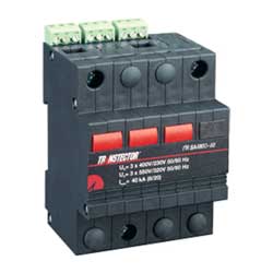 3-phase delta surge protector din-rail for lightning protection and other spikes in electrical power has a maximum amperage of 40 kA. Our industrial AC electrical / lightning SPD is rated at 40 kA on 480V. Transtector TVSS AC power protection device PDF datasheet with details of specifications and CAD drawing with dimensions for 1102-014-26 can be found above.