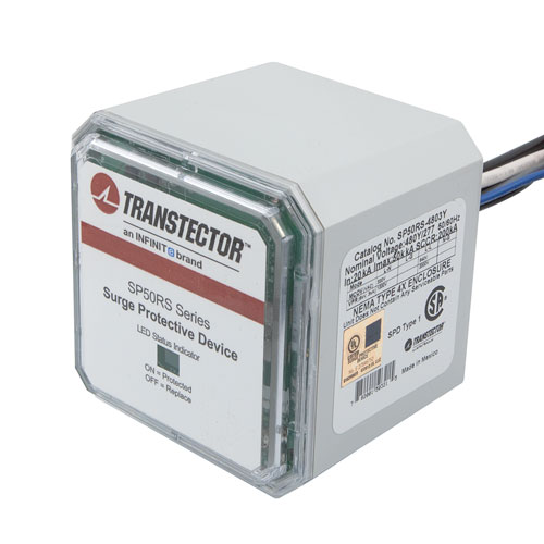 Transtector AC surge protector / arrester (Also known as alternating current surge protection device or SPD as well as transient voltage surge suppressor or TVSS) SP50RS-4803Y is in-stock and will ship same business day as purchased from us. Our AC surge protector / SPD provides overvoltage protection for your equipment and supports long-term system reliability by absorbing high amounts of transient energy while maintaining a low clamping voltage. This industrial surge protector for AC helps prevent damage from VAC overvoltage that can be caused by lightning surge and other strong electrical power spikes. The transient voltage suppressor / TVSS protection device can act as a lightning surge protector / arrestor as well as an AC electrical overvoltage spike surge protection device.