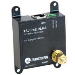 Transtector PoE surge protector / arrester (also known as data line surge protection device or SPD as well as transient voltage surge suppressor or TVSS) 1101-1073 is in-stock and will ship same business day as purchased from us directly. Our 10/100 Base-T Ethernet/PoE+ surge protector / suppressor provides protection for your electronic equipment and supports long-term system reliability by absorbing high amounts of transient energy. This industrial PoE surge protection device for data line applications helps prevent damage from energy spikes that can be caused by lightning and other strong electrical power. The TVSS / transient voltage surge suppression device for power over ethernet can act as a lightning surge arrestor as well as an electrical overvoltage spike protection unit.