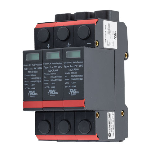 DC surge protector device part number I2R-T2DC-1000Y-TT is designed to protect sensitive electric and electronic equipment from transient voltage. The TVSS product for direct current from Transtector offers superior voltage surge protection. Our electrical surge protection device is rated for indoor use. This indoor SPD for DC is IP20 rated for solutions that require this level of protection.