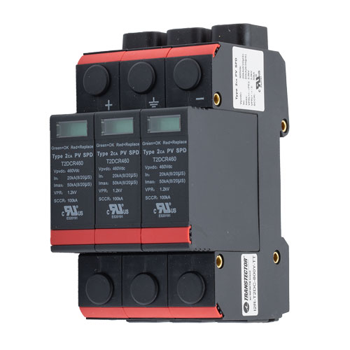 Transtector DC (Direct Current) surge protector (also known as surge protection device or SPD as well as transient voltage surge suppressor or TVSS) I2R-T2DC-800Y-TT is in-stock and will ship same business day as purchased. Our DC surge protector / SPD will provide overvoltage protection for your equipment. This commercial direct current surge protector helps prevent damage from overvoltage DC that can be caused by lightning surge and other strong changes in electricity. The transient voltage suppressor / TVS device can act as an overvoltage spike lightning surge protector / arrestor as well as protect from other direct current electrical surges.