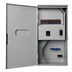 This AC surge suppression equipment enclosure incorporates a 100A main. Transtector SC-3MM100-00-GF2RJ 100A main 120 Vac and 240 Vac electrical enclosure with SPD is a service entrance design. Our 100 amp service entrance panel outdoor enclosure cabinet with transient voltage suppression provides quality protection. The 100 amp cabinet has 16x20A + 2x20A 2-Pole 1-Pole branches and is UL 508A.