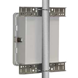 Universal Pole Mounting Kit for our TEF series enclosures makes mounting fast and easy when installing on poles with diameters of 1-1/4 to 2 inches. This mount allows you to use stainless strap band clamps to mount the enclosure to pipes and poles.
