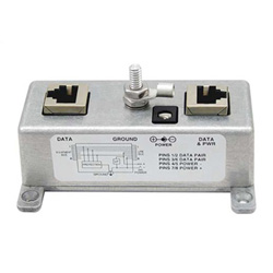 Transtector's PI-1C5-AFB-LP single-port Category 5 (Cat 5) PoE Midspan/Injector (also known as PoE Passive Splitter or Tap) is a commercial grade Power-over-Ethernet device that supplies power for a 10/100 Base-T Power-over-Ethernet, PoE equipped network device. It is compatible with a Power Device (PD) that support the IEEE 802.3af standard PoE power feed using Mode B (Pins 4/5 and 7/8). Additionally, the unit supports both positive and negative DC as well as AC power up to 55 volts. Only a single Ethernet cable is run to each network appliance instead of separate power and data cables as Power-over-Ethernet eliminates the need for an AC outlet to be installed. The PI-1C5-AFB-LP features integral surge protection for the data lines and power feeds. This eliminates the need for an external surge protector. The unit provides protection for both common and differential mode surges. High-speed semiconductors clamp any voltage, positive or negative on the wires. The limits are +/- 58 volts on the four cable pairs. The design utilizes Thyristor diode technology which has superior power handling capability compared to TVS or Avalanche diode based designs. The PI-1C5-AFB-LP can also be used as a standalone lightning surge protector. The PI-1C5-AFB-LP also features shielded RJ45 jacks. This along with a metal housing to helps reduce the effects of EMI interference. A ground lug and terminal is provided directly on the injector housing providing superior grounding. The cast aluminum housing includes integral mounting feet for ease of installation. This unit does not come with a power supply. The user can choose the appropriately sized power supply based on the equipment needs up to 60 volts DC or AC. Please see Transtector's PIPS series of power supplies to purchase one separately or look to other parts in the PI- injector family that do come with a power supply included. Transtector also sells Ethernet surge protection devices and Ethernet cables capable of connecting PoE devices. Check out Transtector's website and buy online today.