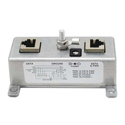 Transtector's PI-1C6-ATB-LP single-port Gigabit Category 6 (Cat 6) Midspan/Injector is a commercial grade Power-over-Ethernet device that provides DC or AC power for one 10/100/1000 Base-T Power-over-Ethernet, PoE equipped network appliance device. PoE is used to supply power to devices such as Cameras, Access Points, IP Phones, and the like eliminating the need for an outlet near the devices and extra power cables. The unit uses Gigabit transformers on all four data pairs in contrast to cheaper designs that only use transformers for two pairs. It is compatible with devices that support the IEEE 802.3af and 802.3at standard PoE power feed using Mode B (Pins 4/5 and 7/8). The unit supports both positive and negative DC as well as AC power up to 60 volts. An integral PTC fuse cuts power in case of a short. The PTC fuse auto resets after the short is removed. The PI-1C6-ATB-LP features integral surge protection for the data and power feeds for networks. It has been designed to meet the GR-1089 Intra-Building surge protection requirements for Ethernet lines. The design provides protection for both common and differential mode surges utilizing three-pole differential Gas Tubes. The tubes feature ultra-low Line to Line and Line to Ground capacitance to minimize distortion of high-speed signals. The PI-1C6-ATB-LP features shielded RJ45 jacks. This along with a metal housing helps to reduce the effects of EMI interference. A ground lug and terminal is provided directly on the injector housing providing superior grounding. The cast aluminum housing includes integral mounting feet for ease of installation. This unit does not come with a power supply. The user can choose the appropriately sized power supply based on the equipment needs up to 60 volts DC or AC. Please see Transtector's PIPS series of power supplies to purchase one separately or look to other parts in the PI- injector family that do come with a power supply included. Transtector also sells Ethernet surge protection devices and Ethernet cables capable of connecting PoE devices. Check out Transtector's website and buy online today.
