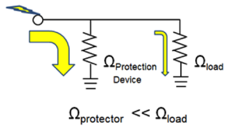 Figure 1: Typical strategy of a protection device in a circuit: to have a lower impedance than the load and to shunt away a majority of the lightning energy.