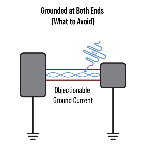 It might seem logical to ground both ends of the shield for “extra” protection, but this often backfires.
