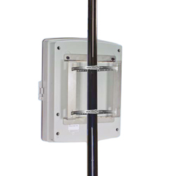 Rugged Pole Mount designed specifically for the Transtector TEP141004 Series enclosures which is easy to install and fits poles 3 to 12-inches in diameter. Using steel bands or steel straps available at any hardware store, the mount is easily attached to the pole after screwing the bracket to the mounting holes on the enclosure using the included hardware kit.