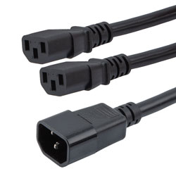 Our power cable has a 250 V maximum voltage and C14 and 2C13 connectors. Transtector split power cord comes in black jacket color and is suitable for data centers, power stations, PDU cabinets, PCs, servers, powered devices and tight space applications. Additional specs and dimensions for power cord can be found on its PDF datasheets and CAD drawings above.
