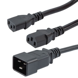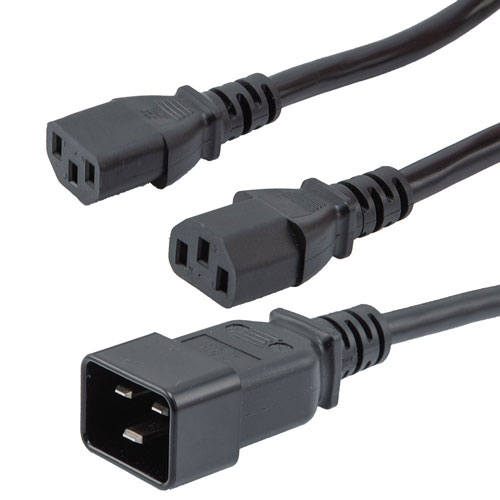 Our power cable has a 250 V maximum voltage and C20 and 2C13 connectors. Transtector split power cord comes in black jacket color and is suitable for data centers, power stations, PDU cabinets, PCs, servers, powered devices and tight space applications. Additional specs and dimensions for power cord can be found on its PDF datasheets and CAD drawings above.