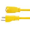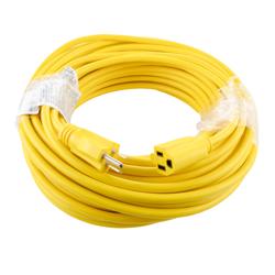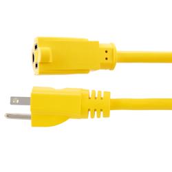 The TTA00079-100F power cord comes with a NEMA 5-15P male connector on one end and a 5-15R female connector on the other end. This yellow-colored power cable is available in a length of 100 feet. This power cable has an SJTW-rated jacket, which protects the cable from harsh environments such as oil and water splashes, sunlight, dirt, and general wear and tear. Our yellow-colored power cable has 3 strands. This 5-15P male to 5-15R female power cord is designed to withstand temperatures up to 105 deg C. Make your online purchase right now to take advantage of our same-day shipping.